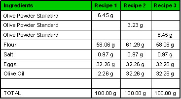 the Olive Powder, flour and salt in a bowl. Add the eggs and olive
